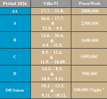 The villa has two bedrooms, 2 bathrooms, 2 separated toilets. There’s a big living room you will find a comfortable sofa with an armchair and big flat screen with many international broadcasting stations.