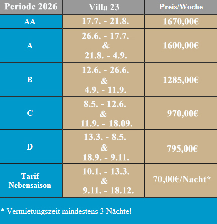 Es handelt sich hierbei um eine Erdgeschoss-Villa in der Grünanlage vom Port Nature. Die Villa befindet sich in ruhiger Lage, in der 2. Reihe am Strand. Sie ist für 2 Personen eingerichtet. Im Wohnbereich befinden sich ein großes Sofa, ein Couchtisch und ein Esstisch mit vier Barstühlen.